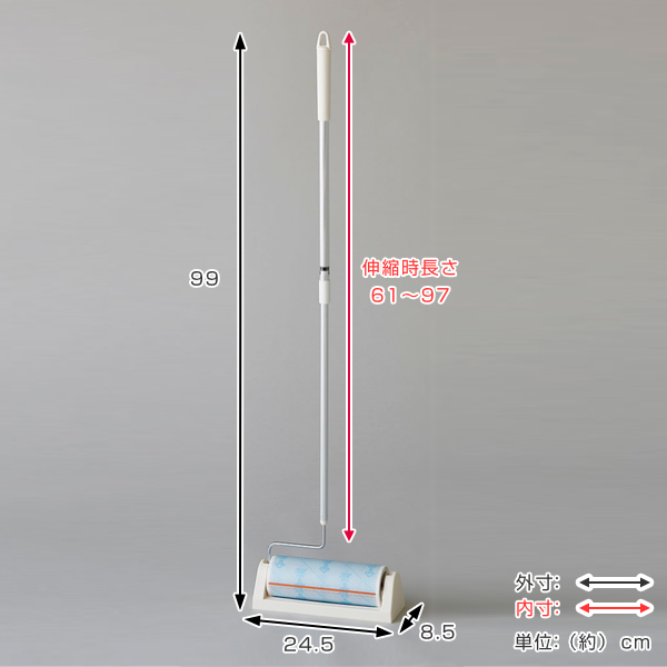 ●伸縮式なので伸ばして使えば歩きながらコロコロでき、広範囲のお掃除も楽に行えます。