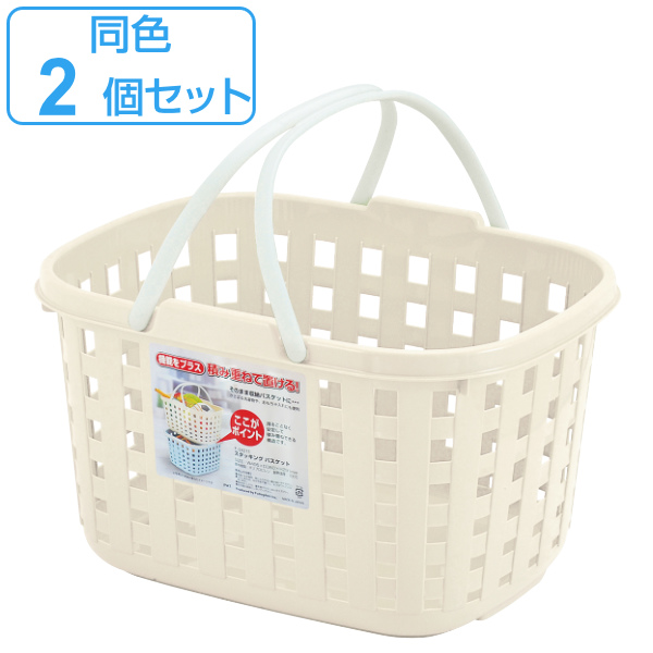 ランドリーバスケット 2個セット スタッキングバスケット 洗濯かご スタッキング 積み重ね ( 脱衣かご ランドリーボックス 洗濯物入れ ボックス ランドリーラック 洗濯カゴ おもちゃ入れ 同色2個 白 セット )
