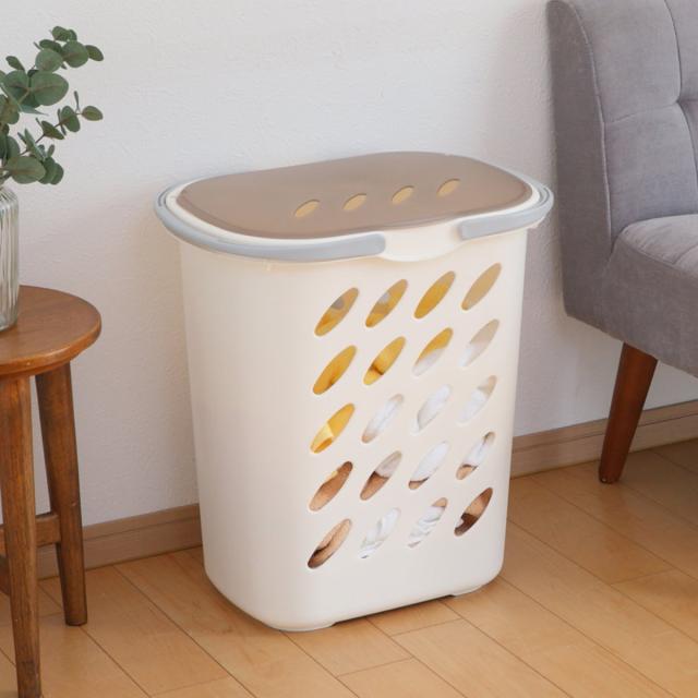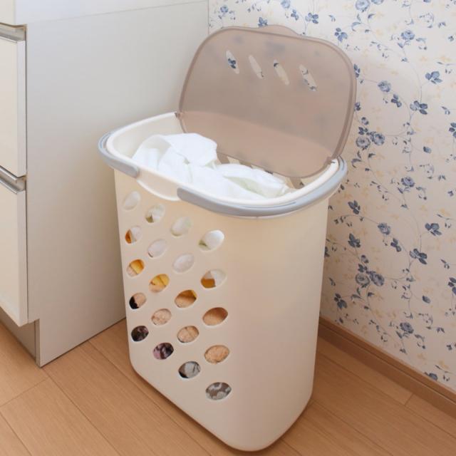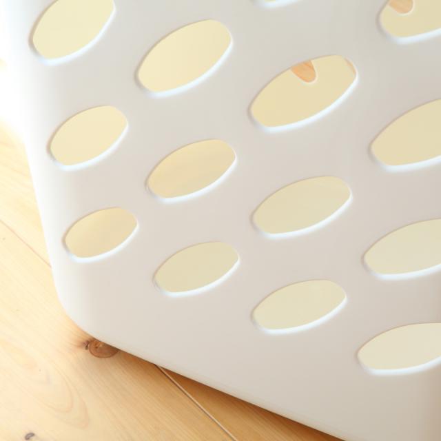 蓋付きで中が見えにくいビッグランドリーバスケットです。見られたくない洗濯物を入れておけるので安心感がアップします。ご家族の多い方やなかなか洗濯ができない時期にピッタリです。他のインテリアの邪魔にならないナチュラルホワイトカラーなので、ランドリーバスケット以外にも、おもちゃ箱や雑貨収納、キッチンなどでもお使いいただけます。