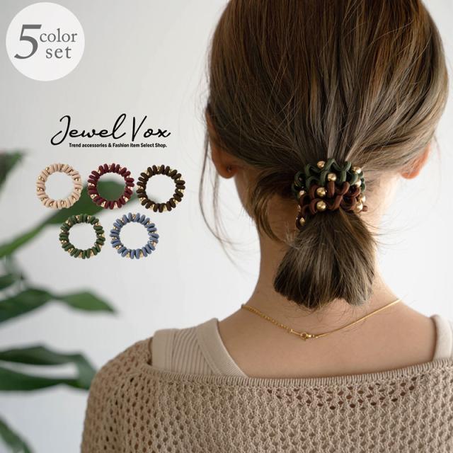 サッと簡単にしっかりととまるスプリングヘアゴムの5点セットです。