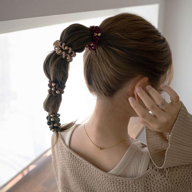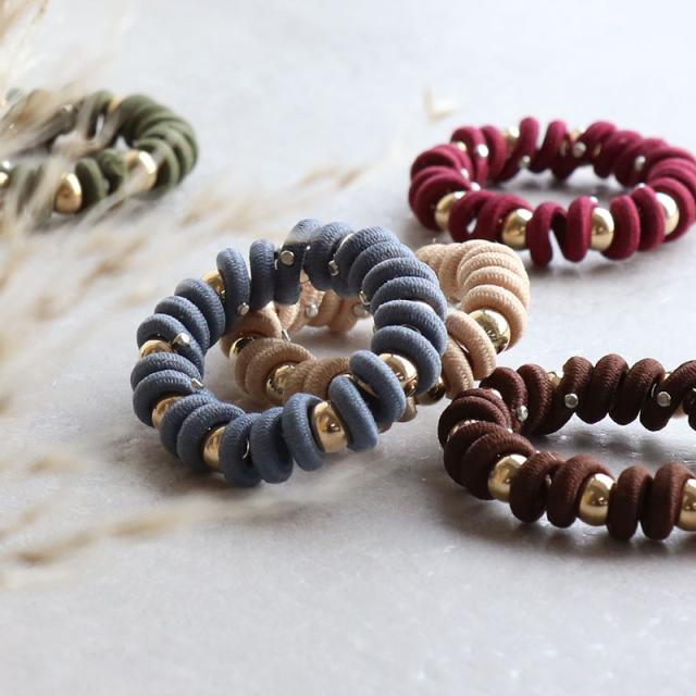 | サッと簡単にしっかりととまるスプリングヘアゴムの5点セットです。 シックなカラー展開と落ち着きのある素材感で大人っぽい印象に! 良く伸び、からみにくくて髪に跡も付きにくいのも嬉しいポイント◎ | |