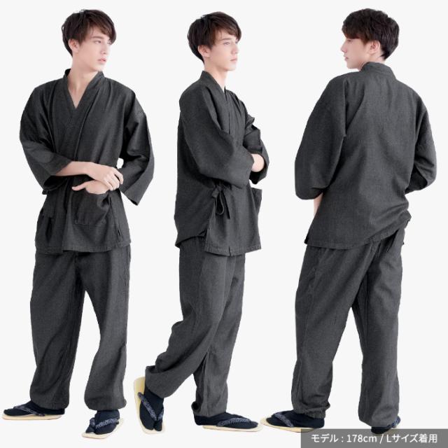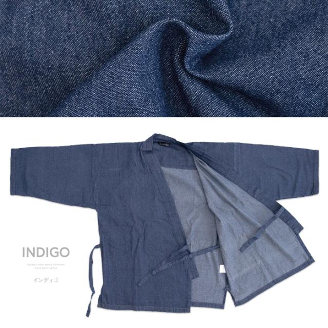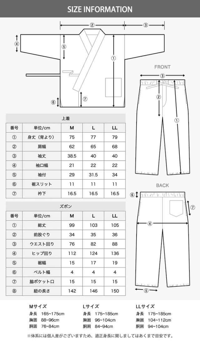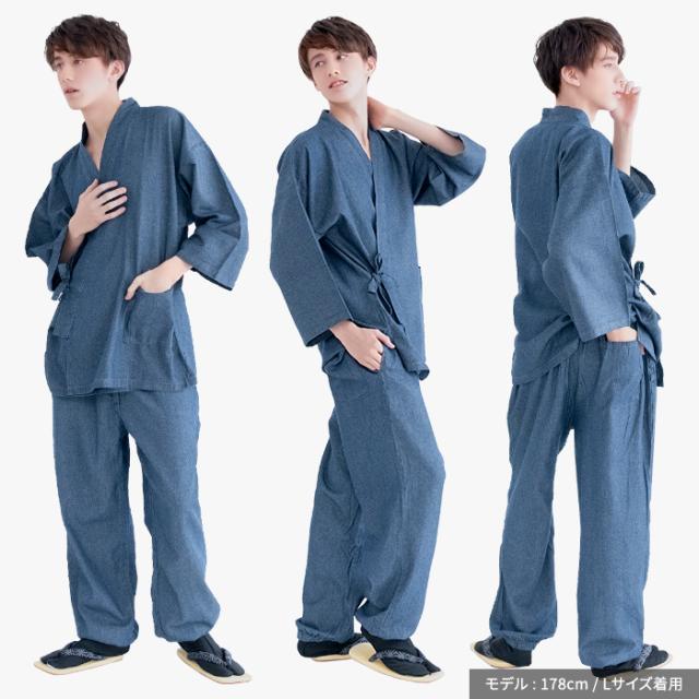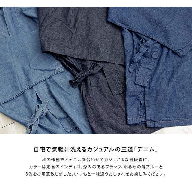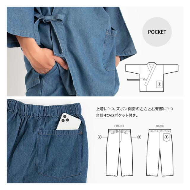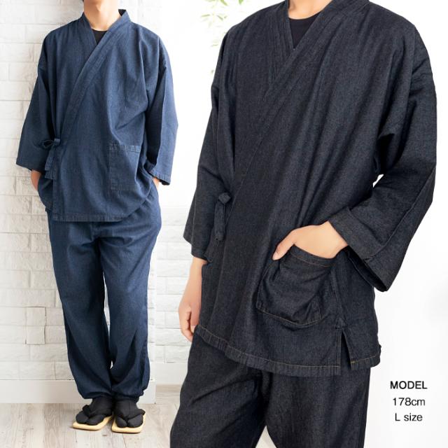 素 材 感 生地の伸縮性:伸縮しません 生地の透け感:透けません 生地の感触:普通です ※あくまでスタッフの感想となりますので、ご参考程度にお考え下さい。 ▶ 作務衣8 通年 ▶ デニム作務衣 春・秋向き ▶ しじら作務衣 夏向き ▶ 楊柳作務衣 夏向き ▶ フリース作務衣 冬向き ▶ メンズ部屋着をもっとチェックする [サイズ] M / L / LL [素材] 綿100% [生産] 中国 [配送] 宅配便 自宅で気軽に洗えるカジュアルの王道、デニムの作務衣。 薄手ながら透ける事のない綿100%のデニム生地を使用しており、秋、春先向きにぴったりです。 ポケットはズボンの両サイドと右臀部、上着の左下についています。 ズボンの着脱は紐とチャックとボタンで行います。ゴム入りなので着脱もらくらく。 お色は定番のインディゴ、深みのあるブラック、明るめの薄ブルーと 三色をご用意しました。 いつもと一味違うおしゃれをお楽しみください。 |