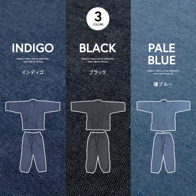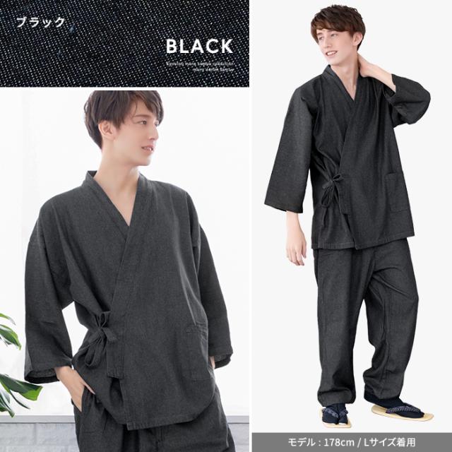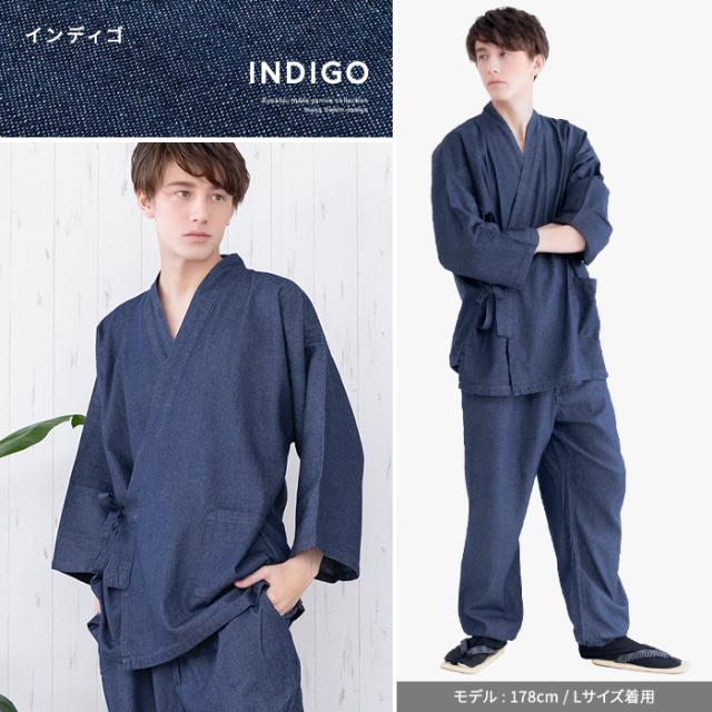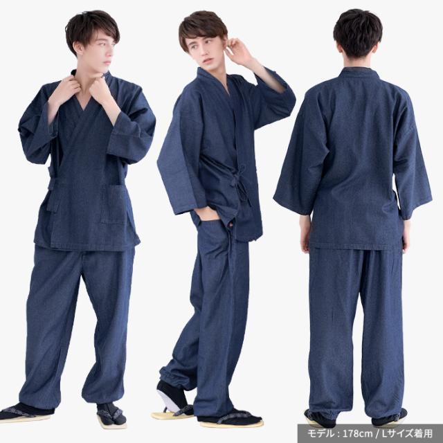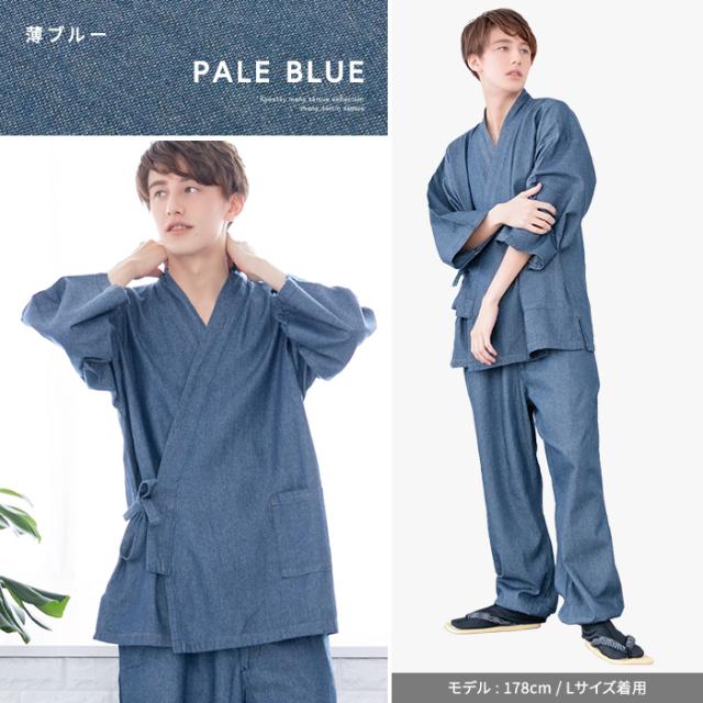 作務衣 メンズ デニム 男性 無地 綿 紺 黒 通年 夏 冬 作務衣パジャマ 作務衣大きいサイズ 大きいサイズ 上下セット おしゃれ さむえ M L LL 春 秋 青(rg)