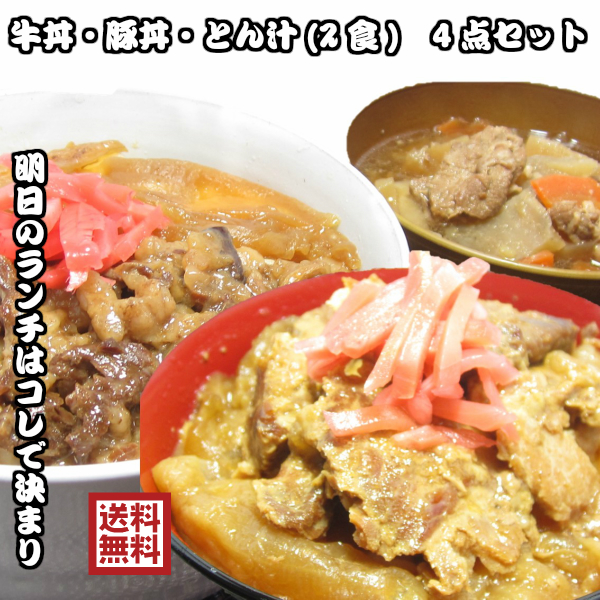 群馬銘柄肉100%使用 牛丼とん汁&豚丼とん汁 計4食セット レトルト食品 丼 詰め合わせ 送料無料 牛丼 豚丼 とん汁 レトルト 惣菜 常温保存 どんぶり セット 群馬 買い置き ご当地グルメ 上州 夜食 弁当 簡単調理