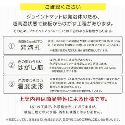 そのため、既に使用しているマットに新しいマットを繋げて使用する際、上手く繋がらない場合もございますので、予めご了承ください。