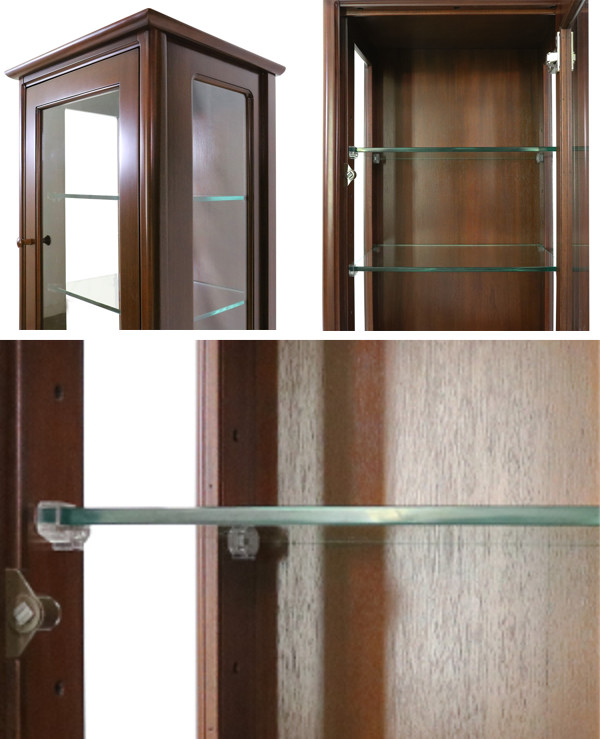 左右の側板はガラス仕様になっているので、横からでも飾ったものを観賞することができます。棚板は可動棚になっており、脱落防止ガラス受け(グラフィックス)が付いています。