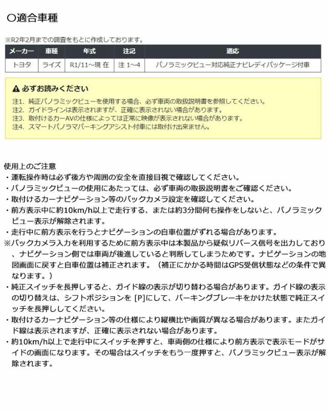 トヨタ ライズ R1/11〜 (パノラミックビュー対応純正ナビレディパッケージ付車) パノラミックビューカメラ変換アダプター