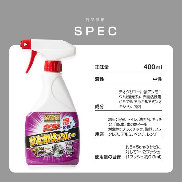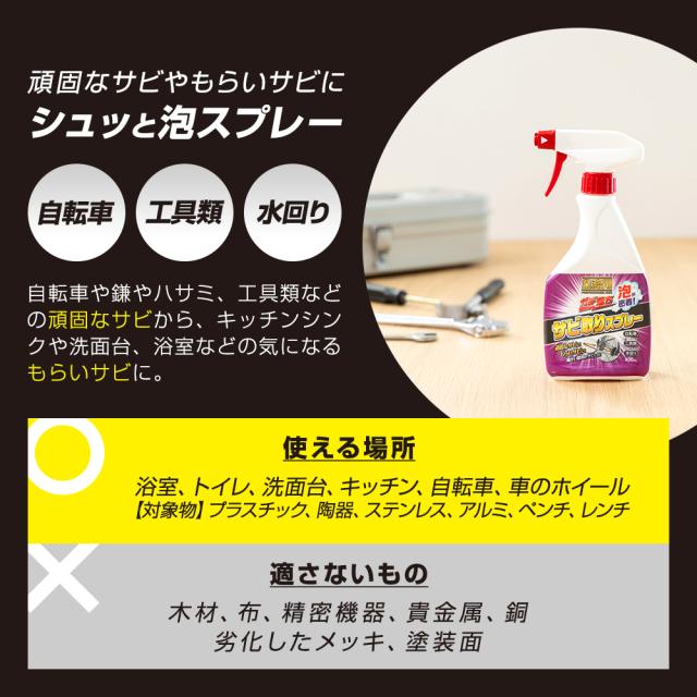 業務用ガチ落ちサビ取りスプレー 錆 さび 自転車 除去 浴室 洗面台 トイレ バイク 工具 ホイール 錆取り もらいサビ 泡スプレー サビ落とし 錆落とし