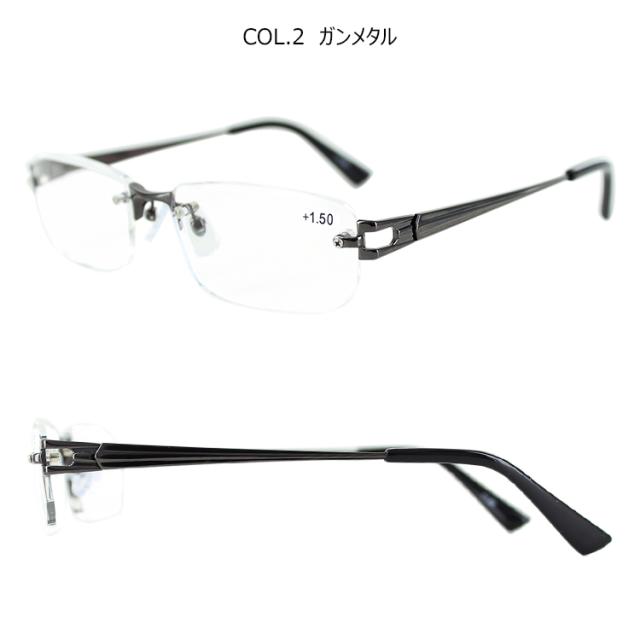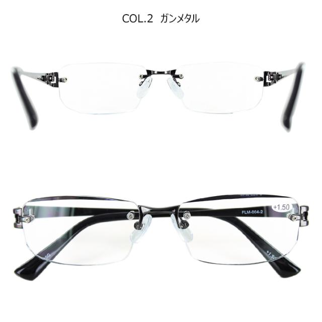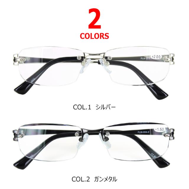 老眼鏡 おしゃれ メンズ UVカット ツーポイント リーディンググラス FLM-004 フチなし 縁なし スクエア 2カラー 5度数展開 FEEL LIFE クラシック シルバー/ガンメタル メタルフレーム クリングス鼻パッド 定形外郵便送料無料 プレゼント ギフト