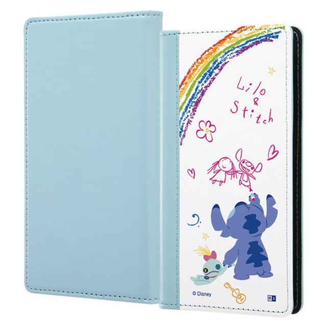 汎用ケース ディズニー カバー ケース 多機種対応 手帳型 レザー 革 耐衝撃 衝撃に強い 保護 バイカラー ベルトなし スマホケース FLEX Mサイズ スティッチ