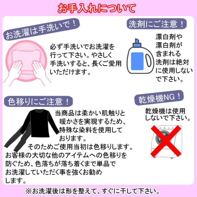 ●色の異なる物とは分けて洗濯し、洗濯後は濡れたまま放置せず速やかに干してください。※色移りを避けるため、単品で洗濯していただく事をお勧めします。