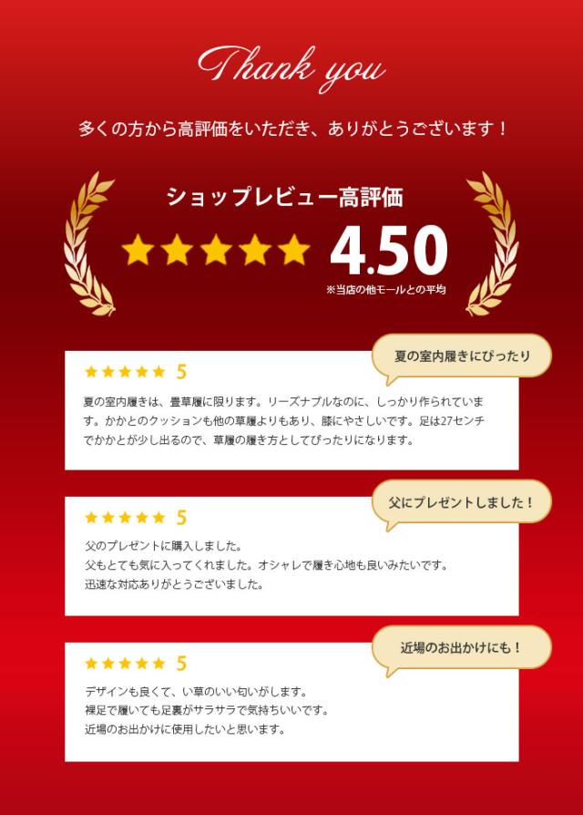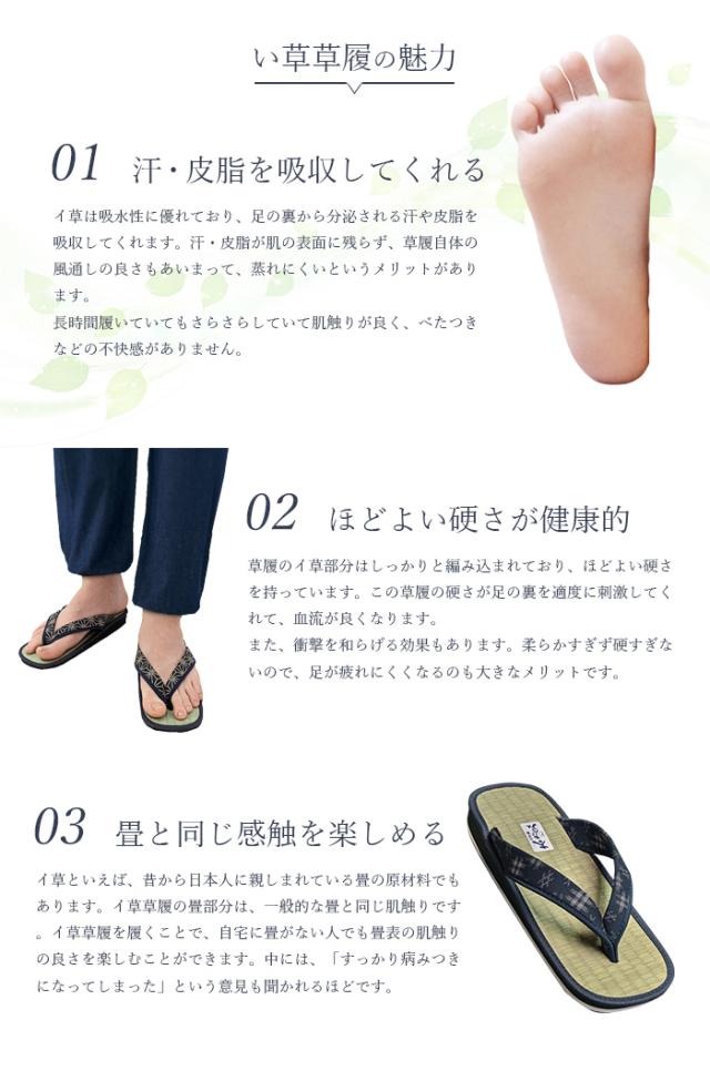 - 開封したときいぐさの香りがした。幅もかなりありはきやすい。底のクッションも適度で良さそう。足の指も痛くならずに履けていい。コストパフォーマンスも問題ない。