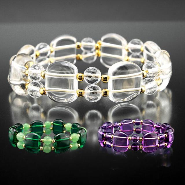スクエアカット水晶ブレス 選べるカラー ブレスレット 天然石 太め おしゃれ クリア パープル グリーン アベンチュリン 願望成就 癒し ストレス緩和 男女兼用 レディース メンズ 開運 お守り 御守り 邪気払い パワーストーン 送料無料