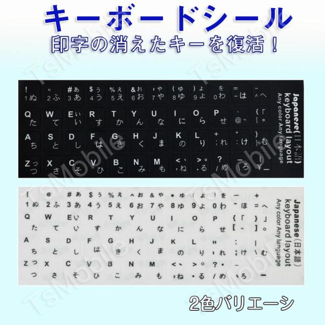 日本語 キーボードシール パソコン PC 鍵盤 修理 消えた文字を復活 JIS 黒地白文字 キーボードラベル ステッカー マット加工 日本語 ポイント消化