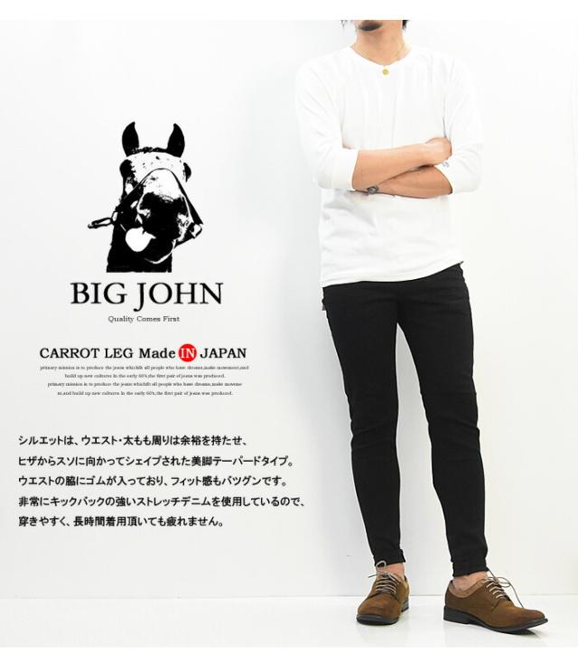 BIG JOHN ビッグジョン M3 キャロットレグ テーパード 日本製 ハイパワーストレッチデニム ジーンズ パンツ メンズ 送料無料 MMM134J-BK01 ブラック