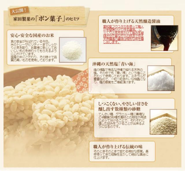 ◆原材料には、国産米、愛知県武豊町の醤油・北海道産砂糖・沖縄県産塩・鹿児島県産水あめを使用しています。
