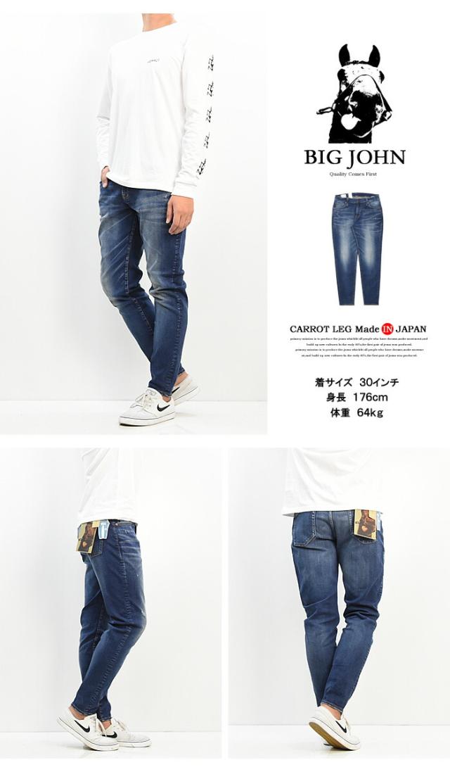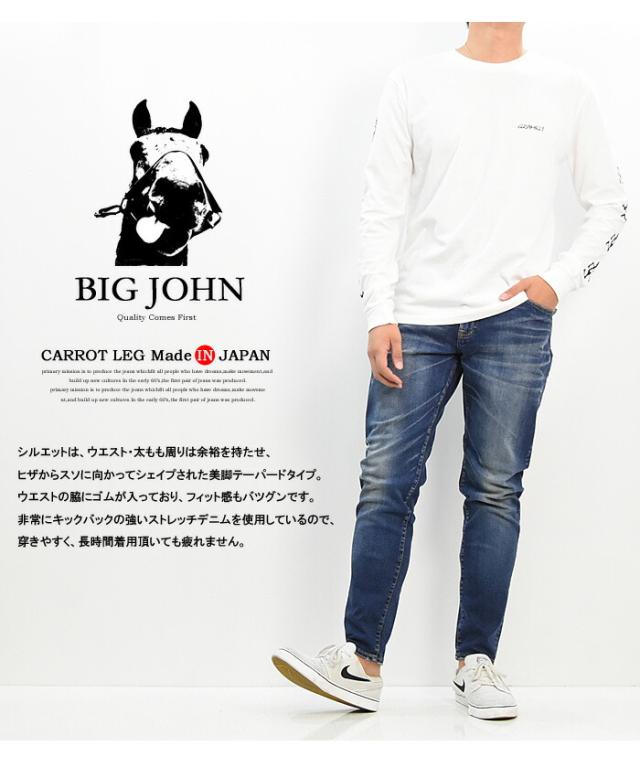 BIG JOHN ビッグジョン M3 キャロットレグ テーパード ダメージ加工 日本製 ハイパワーストレッチデニム ジーンズ メンズ 送料無料 MMM134J-414C