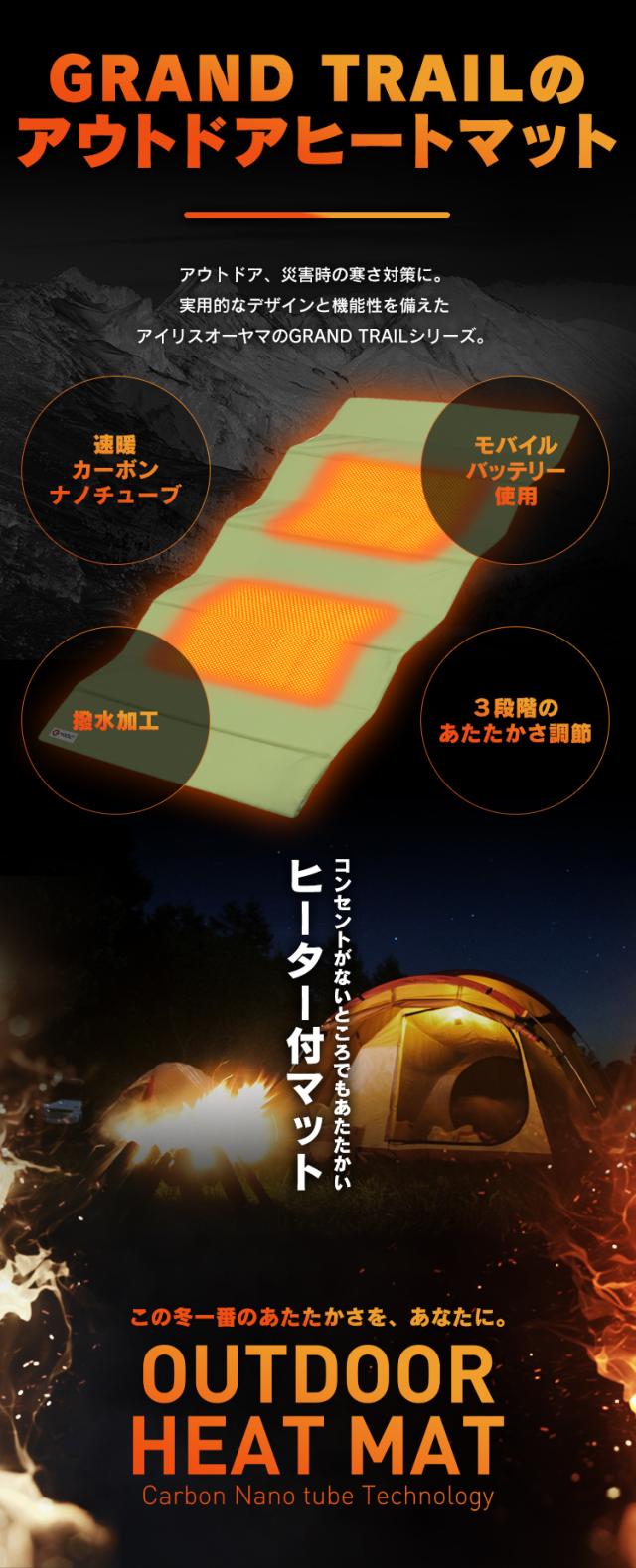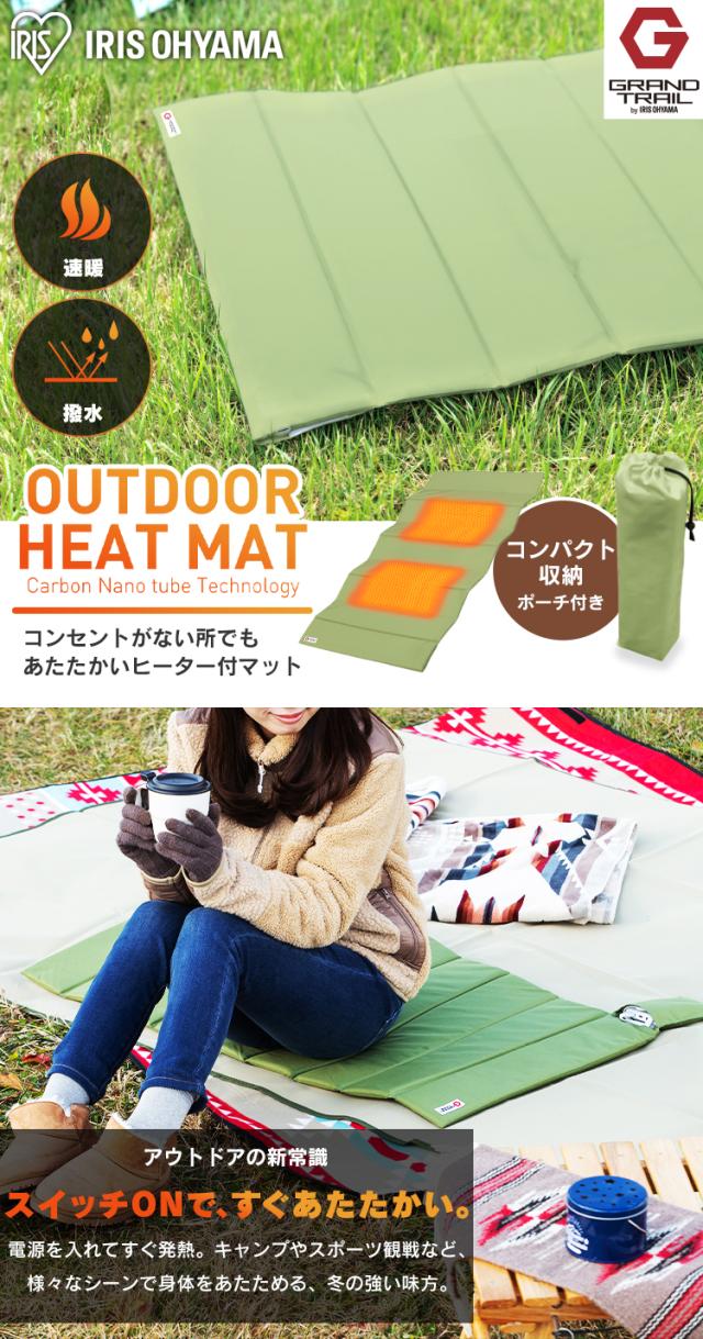 アウトドア ヒートマット HW-OM9-G オリーブグリーン アウトドアヒートマット アウトドア ヒートマット マット 撥水加工 撥水 温度調節3段階 温度調節 ホットカーペット 寝心地抜群 ひーとまっと まっと 洗濯 アイリスオーヤマ 送料無料