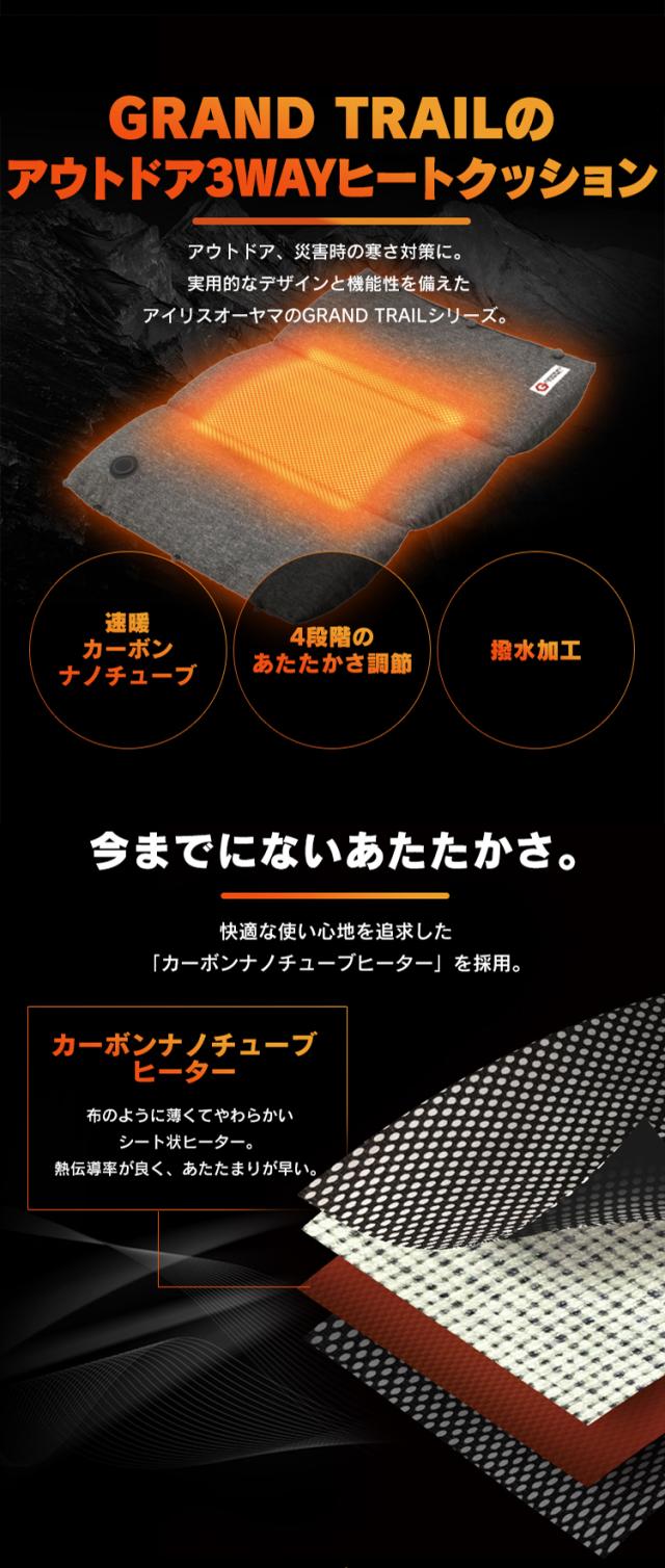 アウトドア3wayヒートクッション HW-O3W-H グレー アウトドア3wayヒートクッション 3way アウトドア ヒートクッション クッション 滑り止め ひーとくっしょん 撥水 アイリスオーヤマ 送料無料