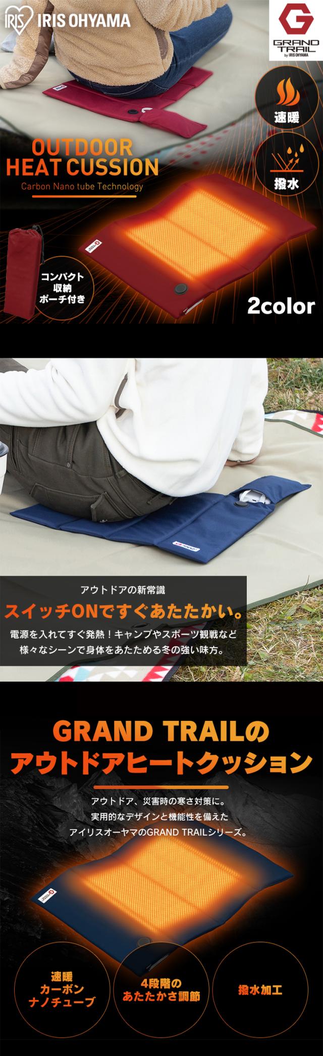ヒートクッション アウトドア ヒートクッション HW-OC4-R HW-OC4-A ワインレッド ネイビー 全2色 ヒートクッション 撥水加工 4段階温度調節 温度調節 スリム 収納ポーチ付き かさばらない クッション 洗濯 アイリスオーヤマ