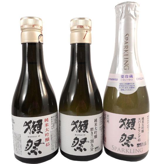 獺祭の磨き39、45、スパークリング45を楽しめるセットです。