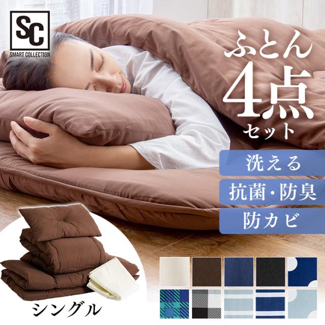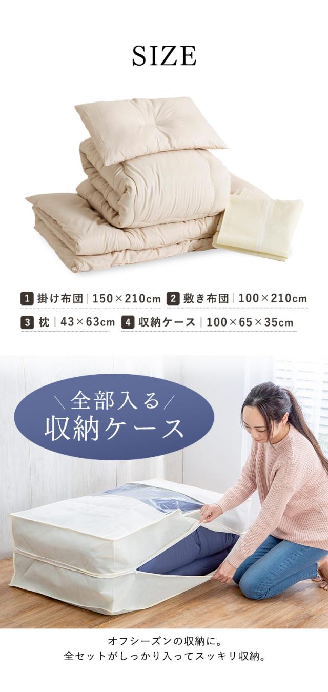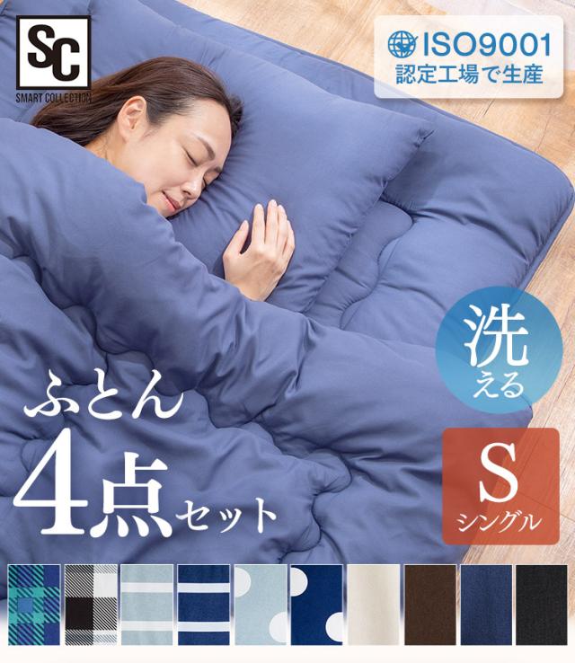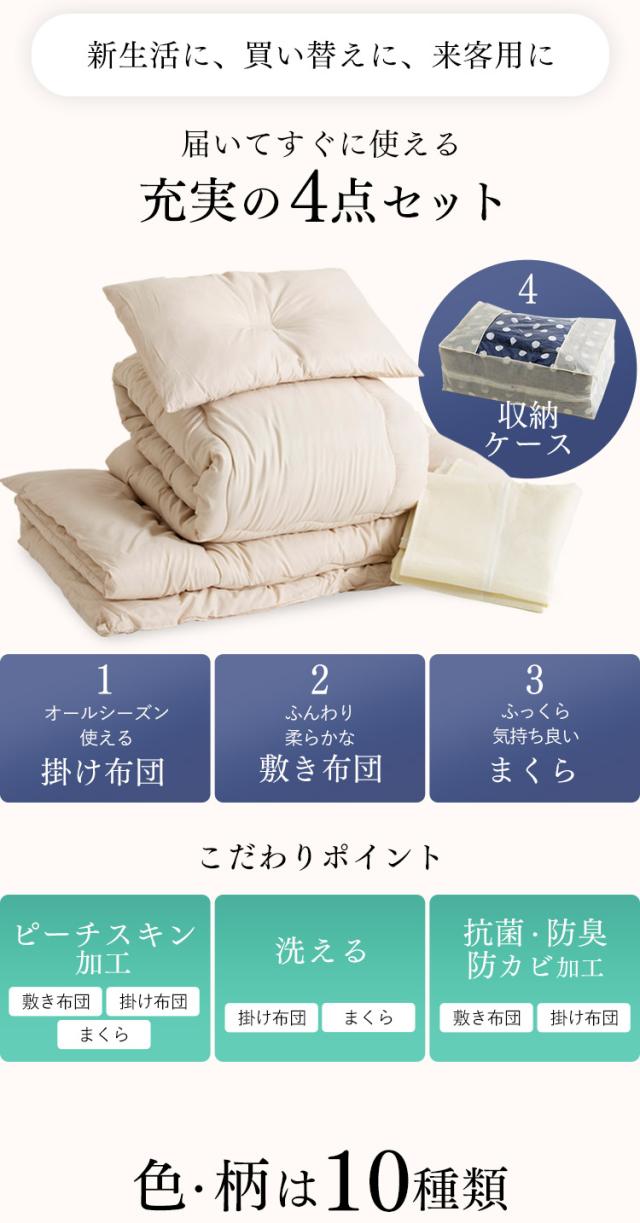 布団セット 4点 シングル 来客用 シングル布団セット 洗える 枕 まくら 布団 掛け布団 ホコリが出にくい 敷布団 3層構造 収納ケース付き 来客用布団 収納 掛布団 敷き布団 抗菌 防臭 防カビ 夏 冬 オールシーズン 一人暮らし 新生活 PCFT4-S *