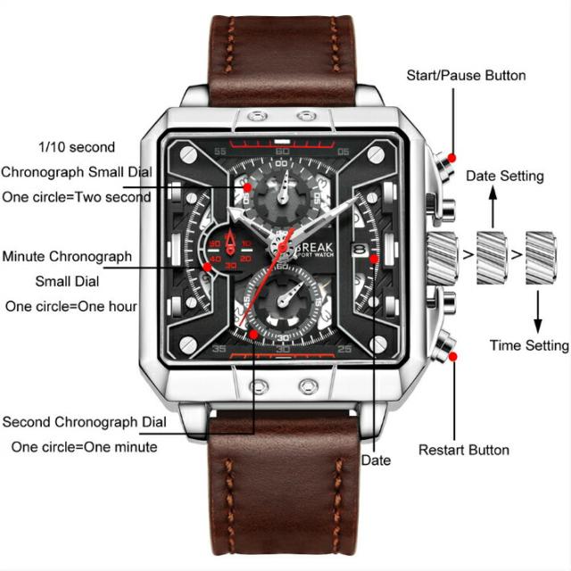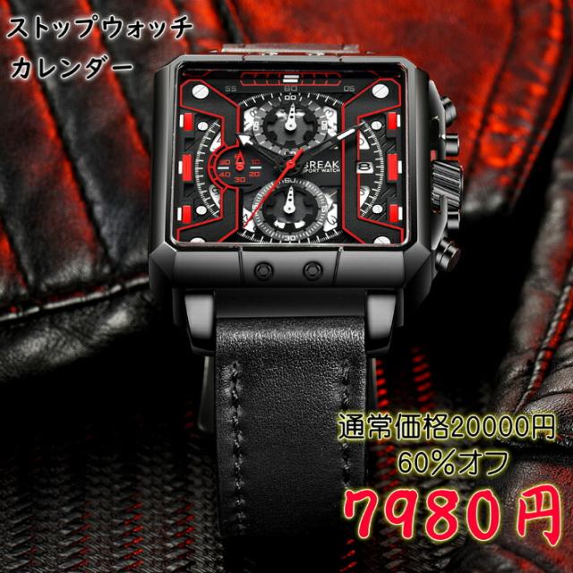 【送料無料・税込み】BREAK TB-020104-020108 腕時計 お洒落 クオーツ メンズ 重厚 高級 クール 流行 カレンダー ストップウォッチ 日本製 Quartz