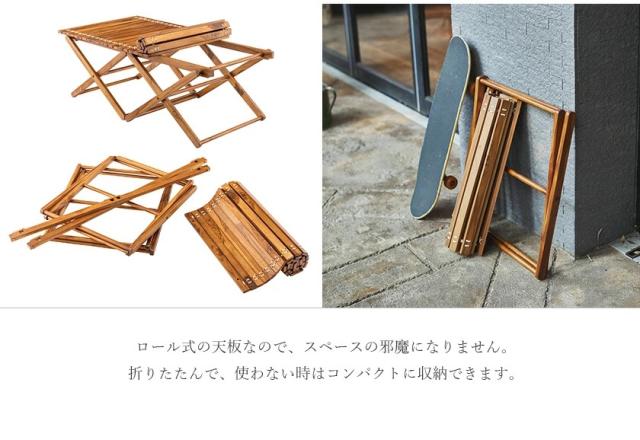 ウッドロールテーブル 幅110 送料無料 ガーデンテーブル レジャーテーブル 折りたたみ アウトドアテーブル 木製 キャンプ用品 アウトドア用品 安い 激安 コンパクト 収納 ロール式 天板