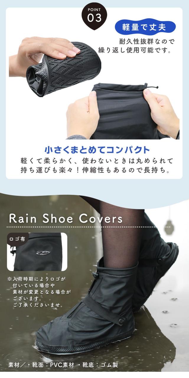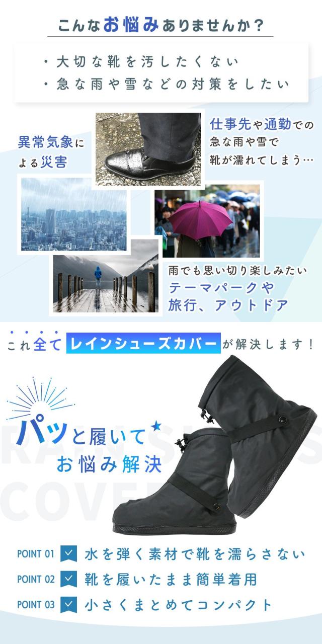 突然の豪雨やゲリラ豪雨、梅雨の長雨にも安心して対応できる「レインシューズカバー」。防水仕様で大切な靴をしっかりガードし、足元の不快感を軽減します。靴の上から簡単に装着できるタイプで、通勤や通学、旅行やアウトドアなど様々なシーンで活躍します。防災や災害時の備えとしてもおすすめのアイテムです。