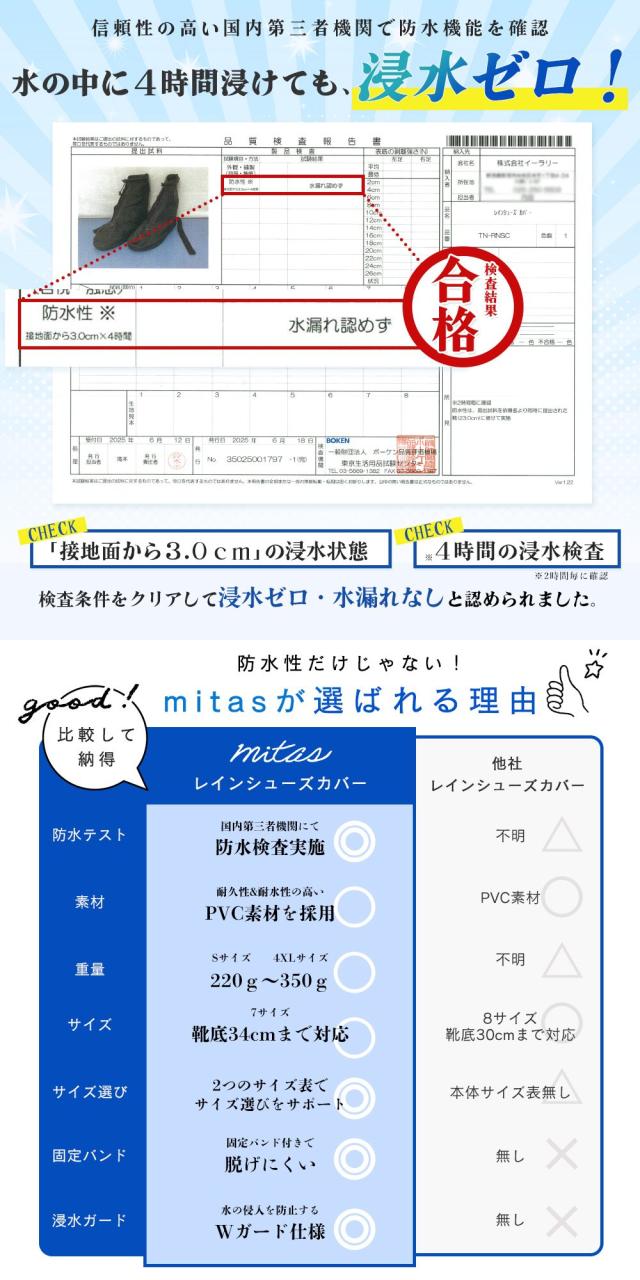【国内防水検査合格】 レインシューズカバー 雨の日の靴カバー レインカバー 靴 雨の日グッズ 滑りにくい レインブーツカバー 防水 撥水 防水靴カバー レイン 靴カバー 雨用 メンズ レディース 子供 自転車 ファスナー 折り畳み 長靴 携帯 持ち運び 緊急時 災害 mitas