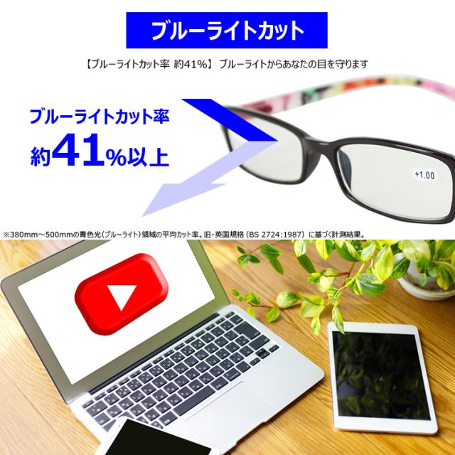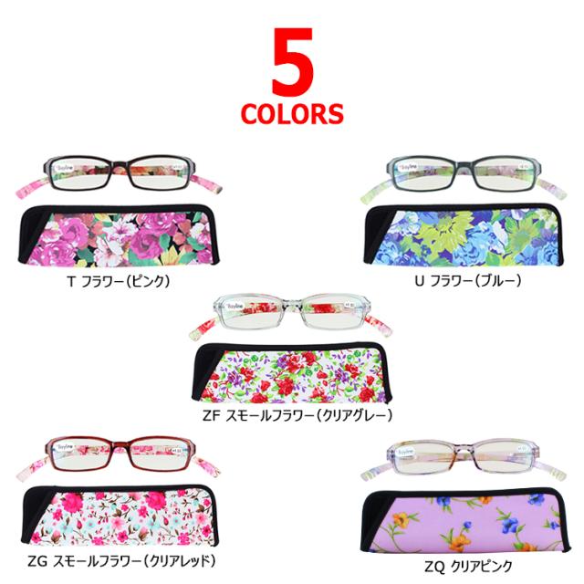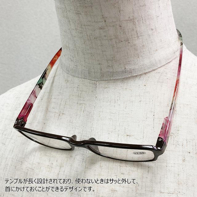 老眼鏡 レディース ブルーライトカット おしゃれ 首かけ リーディンググラス シニアグラス PC2217 花柄 ネックリーダーズ スタンダード スクエア 花柄 かわいい 可愛い 女性用 バネ蝶番 セルフレーム 5度数 1.0 1.5 2.0 2.5 3 4カラー ケース付き プレゼント ギフト