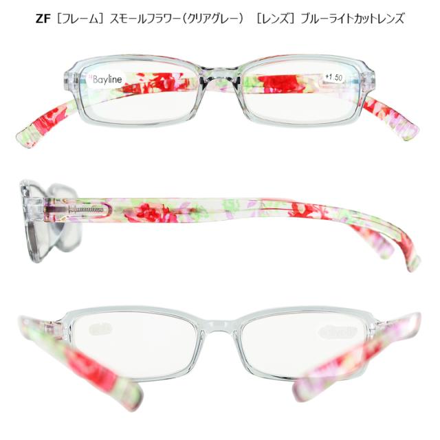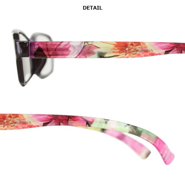 | ・フレームカラー T フラワー(ピンク) U フラワー(ブルー) ZF スモールフラワー(クリアグレー) ZG スモールフラワー(クリアレッド) ZQ クリアピンク ・レンズカラー(全色共通) スーパーライトグレーレンズ | ・素材 フレーム:プラスチック テンプル:プラスチック レンズ:プラスチック ・機能 バネ蝶番 紫外線透過率:1.0%(UVカット99%) ブルーライトカット率:約41%※ ※英国基準(BS2724:1987)に基づく ・重量 約26g |