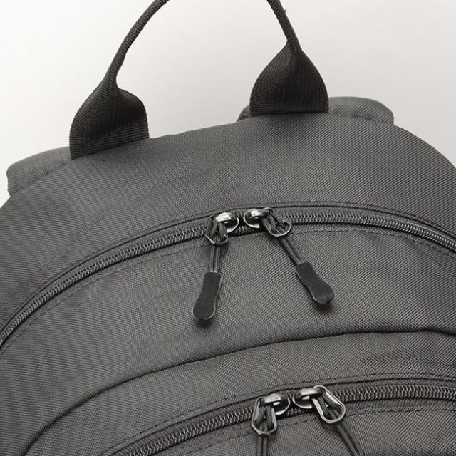 | デザインは中央にロゴ刺繍があり、幅広い年齢層でお持ちいただけるベーシックなものになります。 二層式の本体に大きめの前ポケットが付属の為、全体容量もあり、通勤、通学にも最適です。 3色展開で、本体ブラック、刺繍色だけが異なります。 |
