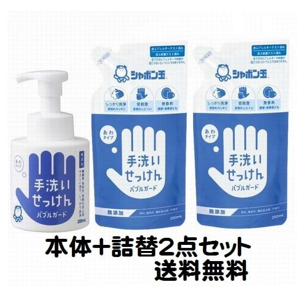 おすすめ 除菌 シャボン玉 ハンドソープ インフルエンザ ウイルス 予防 対策 手洗い石けん あわタイプ バブルガード 本体+詰替え 無添加 送料無料 送料込み