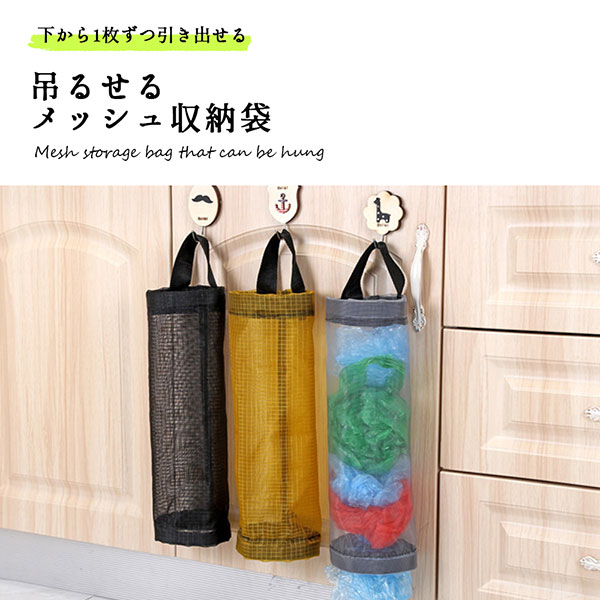 吊るせる 収納袋 おしゃれ メッシュ 壁掛け 吊り下げ キッチン ゴミ袋 レジ袋