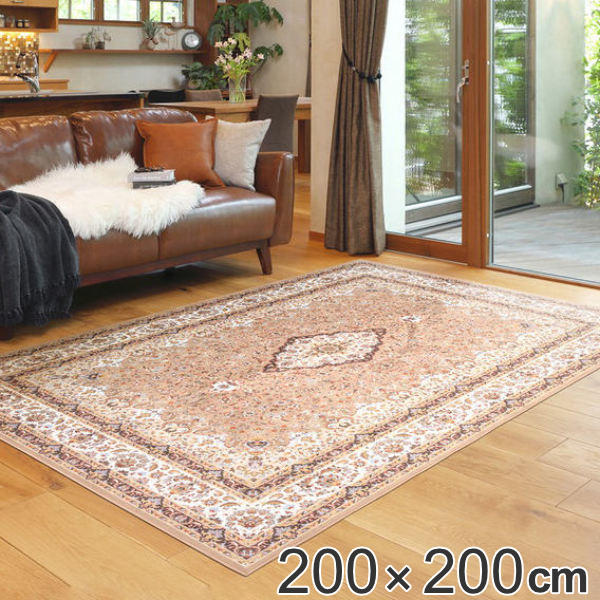 ラグ 撥水加工付き 転写プリントラグ ブルグ 200×200cm ( カーペット 絨毯 マット ラグマット 撥水加工 滑り止め 洗える 床暖 ホットカーペット お掃除ロボ 対応 高級感 リビング ダイニング )