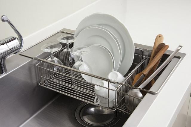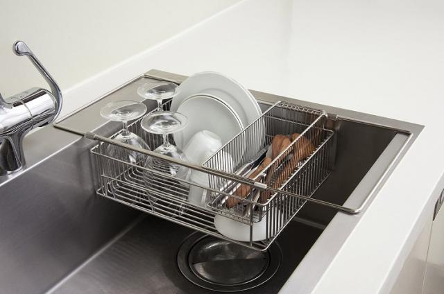 シンク脇に置かれた水切りかごとは違った使い勝手の良さがこのシンクインバスケットにはあります。