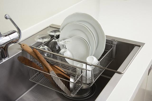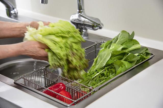 シンクに水切りかごが入ることで、食器の水切り以外にもザルの役目も果たします。