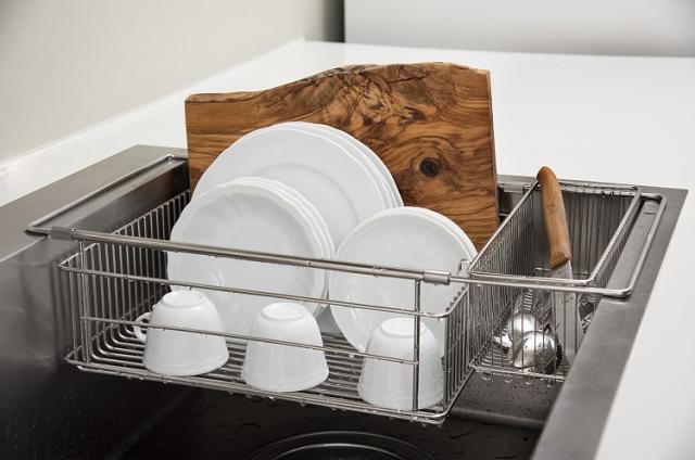 そこで、水切りかごをシンクの中に入れ、作業台のスペースをすっきりさせたいという思いからシンクインバスケット。