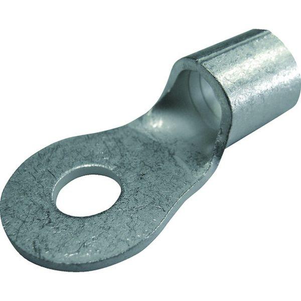 ・接触面(舌部)が丸く、ねじ固定用の取り付け穴がある裸圧着端子です。