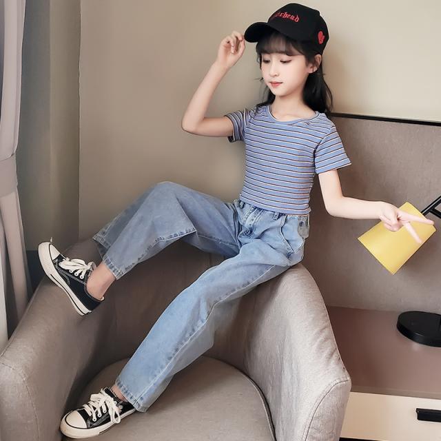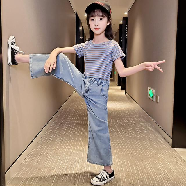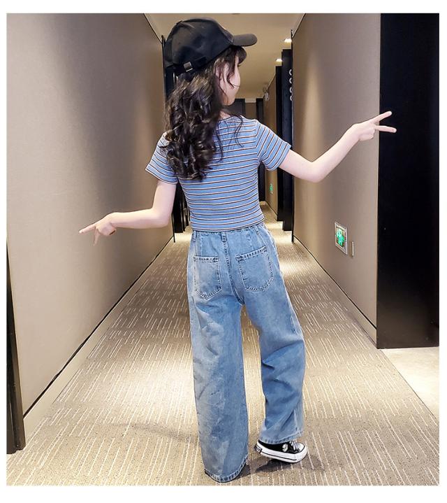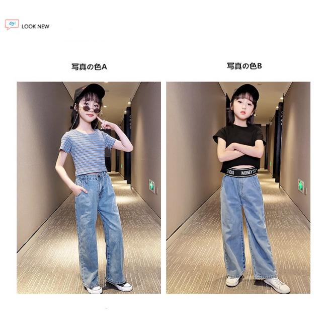商品説明:子供服 ズボン 女の子 ボトムス カジュアル デニムワイドパンツ