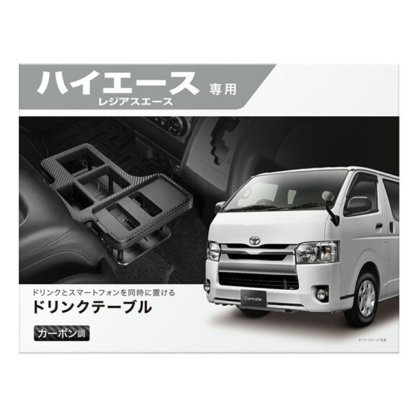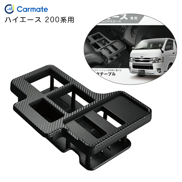 カーメイト ドリンクテーブル プレミアム ハイエース 200系用 H16.8〜 カーボン調ブラック センターコンソール有車 小物収納 NZ593