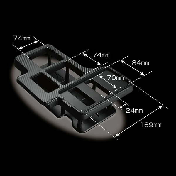 マットブラックを基調とし、天板に質感の高いカーボン調の意匠を採用しています。