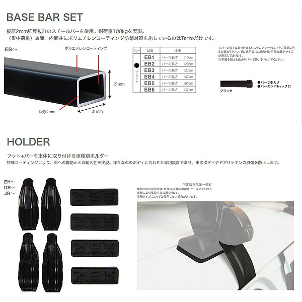 PIAA/Terzo キャリア車種別専用セット H21.9〜 ランドクルーザープラド 150系 ルーフレール無 EF14BL + EB2 + EH448 + EA208