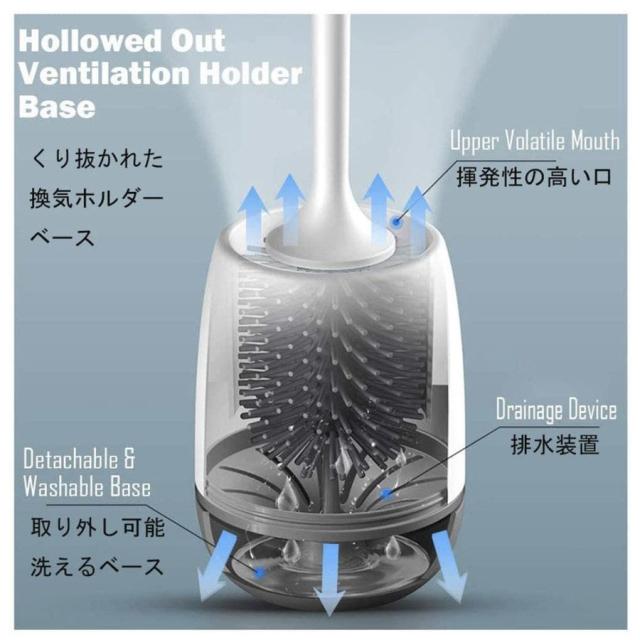 ★【衛生的なデザイン】:ユニークなデザインのトイレブラシには防水性と通気性のあるベースがあり、統合された収集トレイは余分な水を保持でき、収集トレイの換気スロットは水をすばやく蒸発させます。 すばやく水を切り、トイレブラシは常に表面を乾いた状態に保ち、細菌やカビなどを防ぎます。 心配する必要はありません。