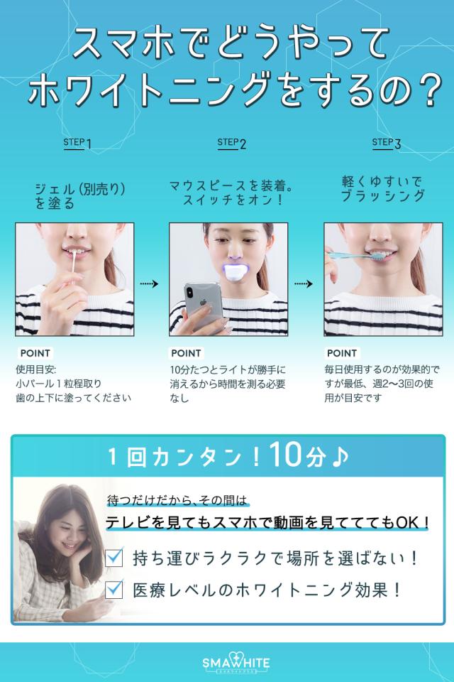 ホワイトニング ledライト 歯 武内製薬 スマホワイト 自宅 おすすめ led マウスピース 歯磨き粉 ジェル は別売り 白く メンズ レディース 兼用 ホームホワイトニング セルフ セルフホワイトニング 簡単 手軽 白い 歯を ホワイトニングシート シート