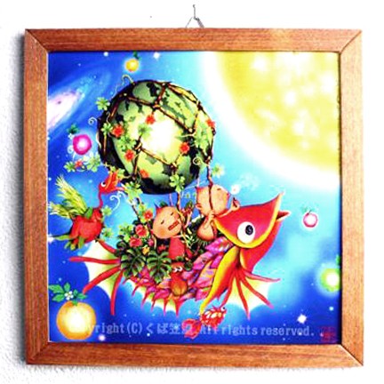 誕生日プレゼント おしゃれ 絵 絵画 グラフィックアート 壁掛け 壁飾り 額付き キジムナー ちび絵 フラワーフィッシュ Sサイズ32番