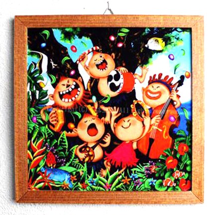 誕生日 プレゼント おしゃれ 絵 絵画 グラフィックアート 壁掛け 壁飾り 額付き キジムナー ちび絵 ファミリーオーケストラ Sサイズ33番