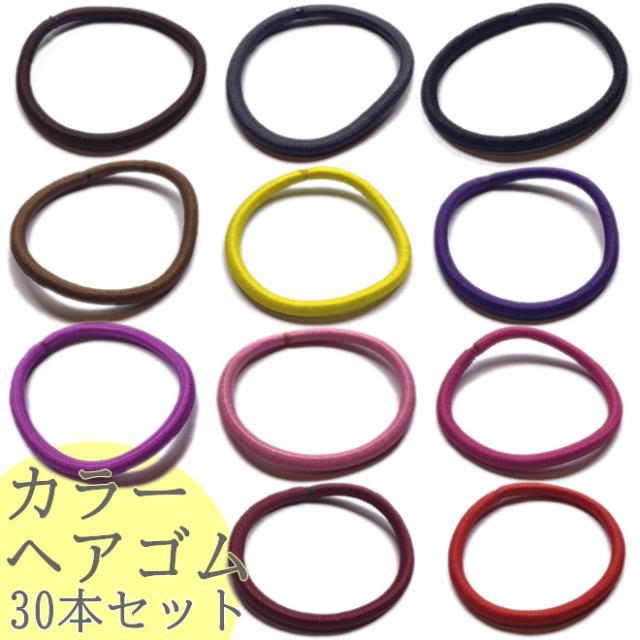カラーリング ヘアゴム リングゴム 大容量 30本セット 11色 結び目 接合なしタイプ シンプル ふとめ 普段使い 手芸 ハンドメイド アクセサリ 素材