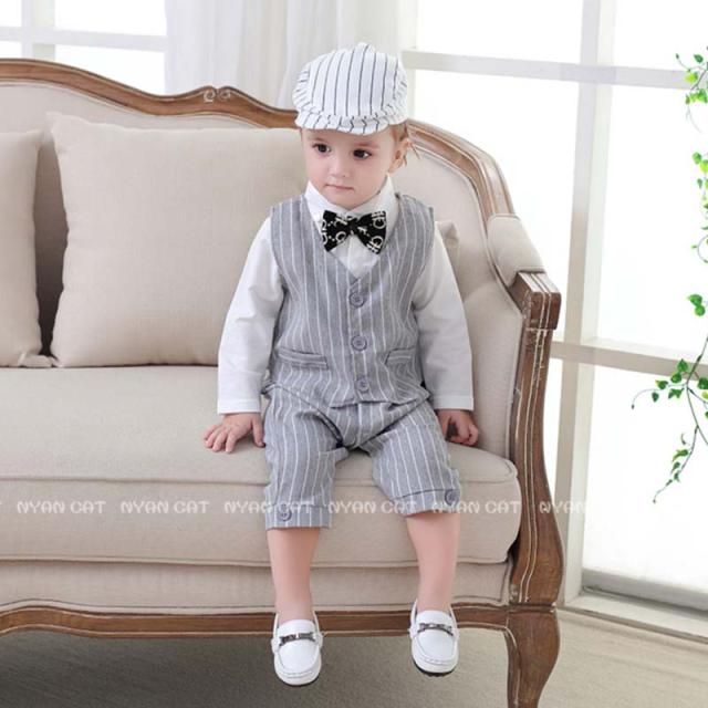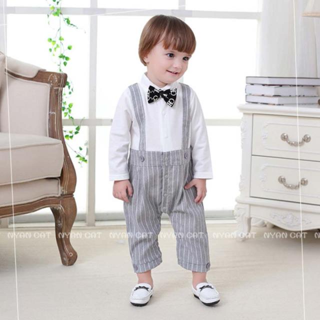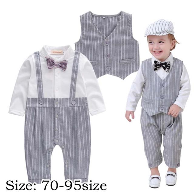 メール便送料無料 長袖 ロンパース 男の子 ベビースーツ 男の子 フォーマル 男の子スーツ 子供服 ベビーフォーマル 男の子 新生児 幼児 結婚式 七五三 卒園式 入園式 出産祝い 記念日 撮影 カバーオール ロンパース ストライプ 70 80 90 95cm 蝶ネクタイ付